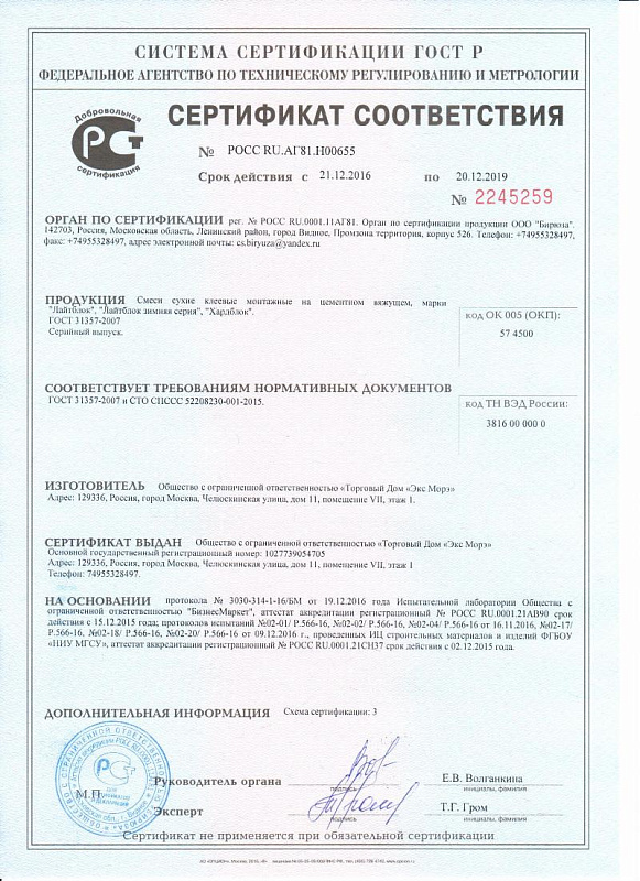 | Материал | портландцемент,фракционированный песок,модифицирующие добавки. |