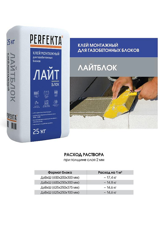 | Назначение | Клей для газобетонных, газосиликатных и блоков из ячеистого бетона |