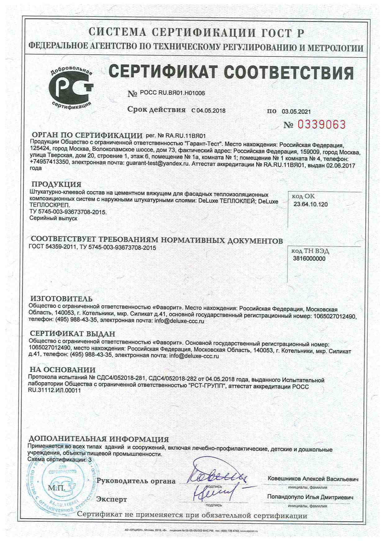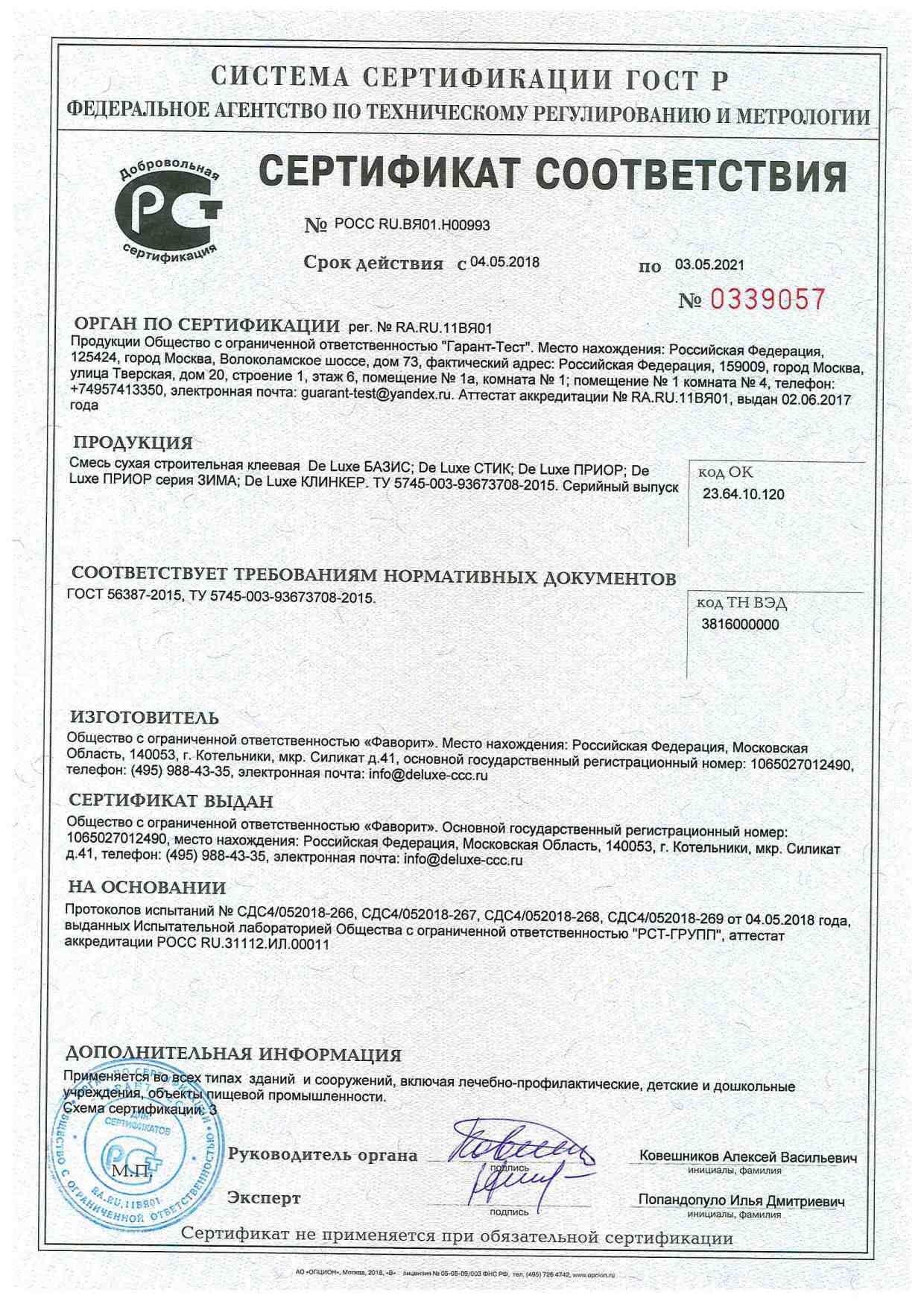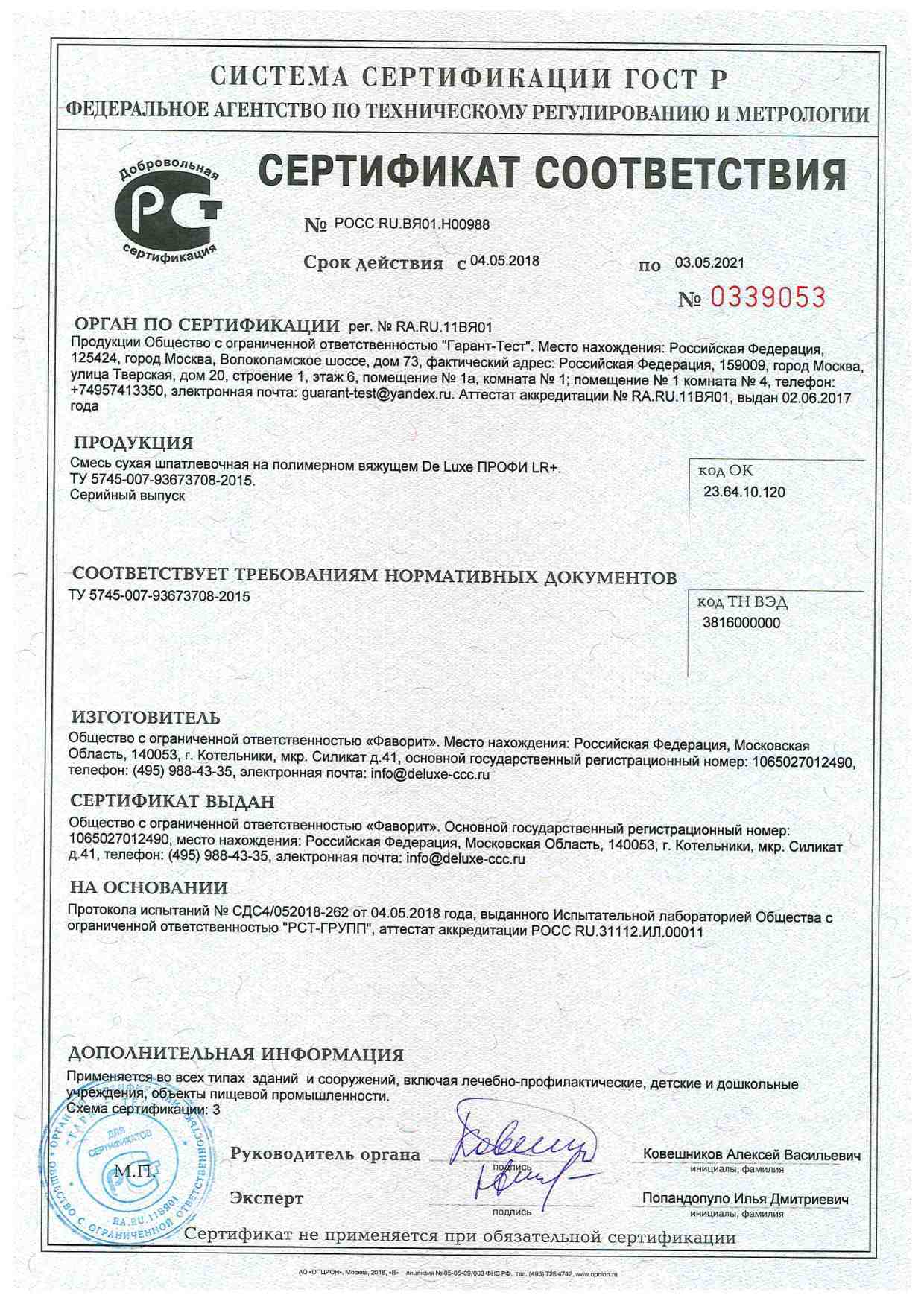 Сертификаты соответствия